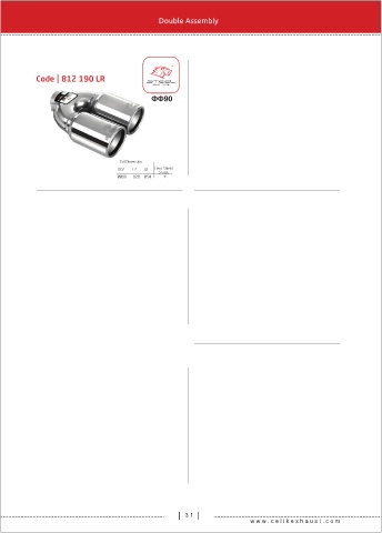 Double Assembly Code 812 190 LR Tail Dimension OD2 L2 ID Heat Shield Status ØØ90 120 Ø54 Y 3 1 w w w . c e l k e x h a u s t . c o m