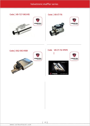Valvetron c muffler ser es Code VO-727-063-RS Code VO-CT-76 BMW SERIES Code 662-063-RSR Code VO-CT-76-YPIPE 61 w w w . c e l k e x h a u s t . c o m
